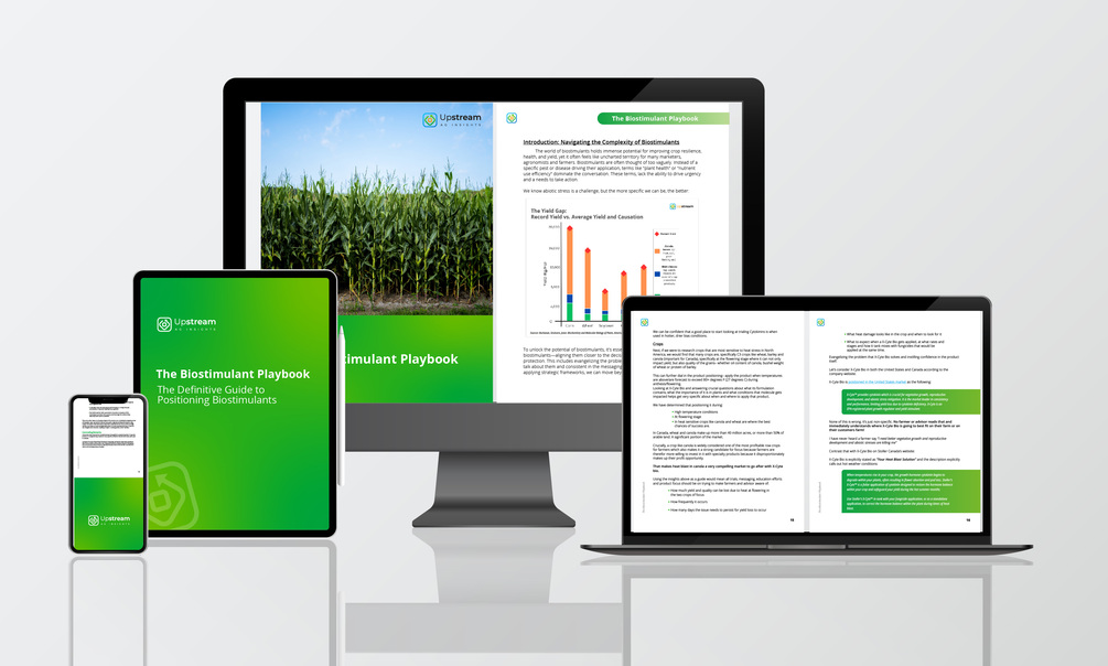 The Biostimulant Playbook is your essential guide to successfully positioning biostimulants, offering strategies like "The Sauce Paradox" for precise product positioning, a practical case study, and a bonus subscription to Upstream Ag Professional to help agribusiness professionals thrive in their career.